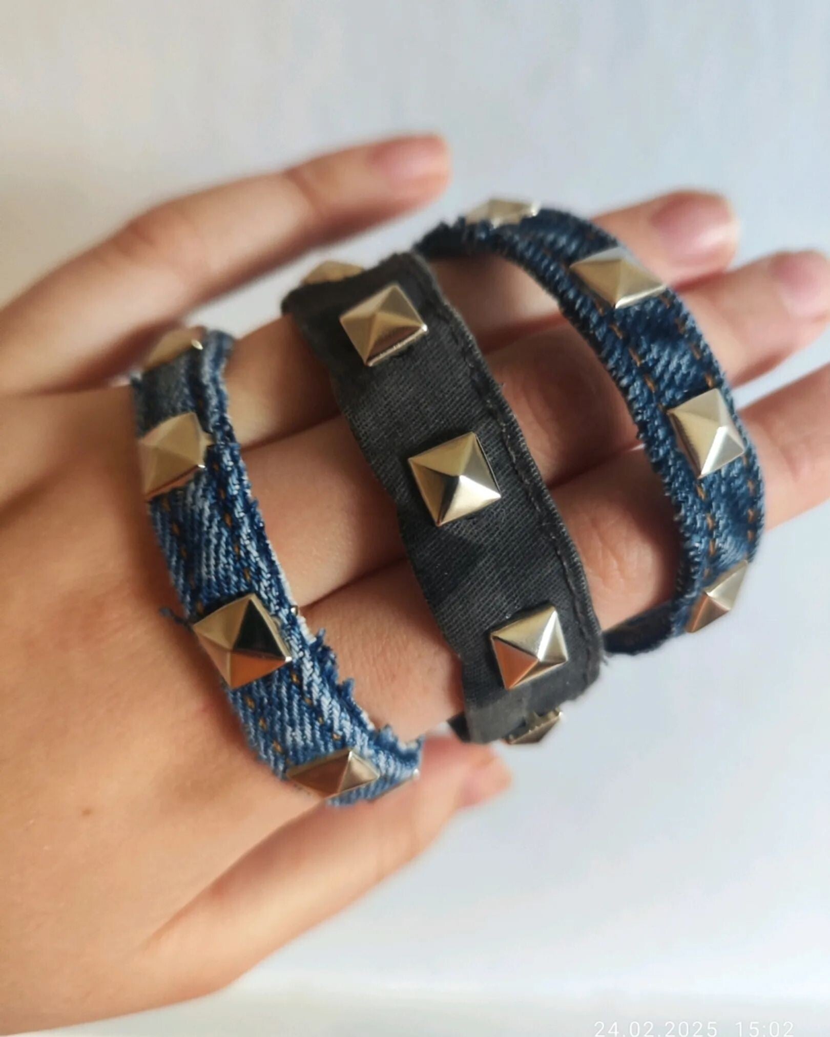 Kule denimarmbånd av brukte dongeribukser.